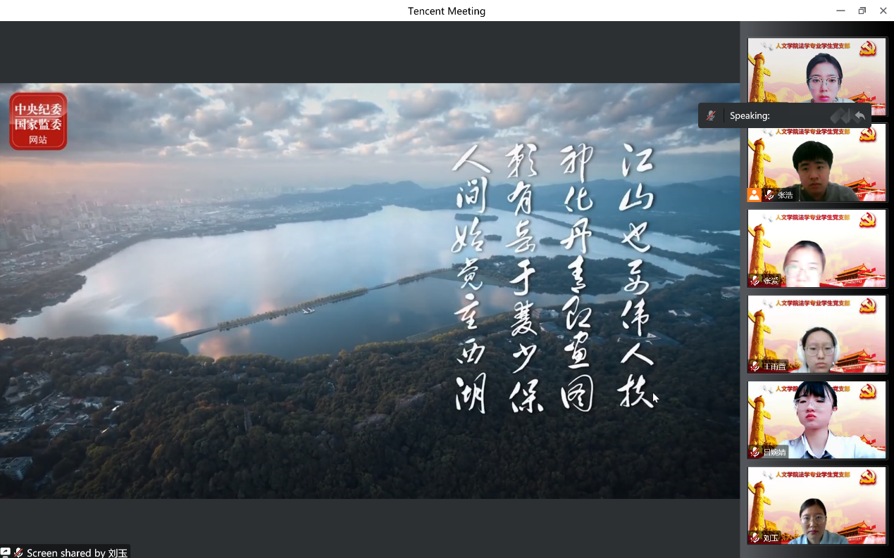 2022年11月26下午2点,人文学院法学专业学生党支部在通过腾讯会议的方式开展“让党旗飘扬,让党徽闪耀”主题党日活动。本次活动分为深入学习贯彻二十大精神、学习廉政建设和打赢疫情防控阻击战三方面的内容。活动由人文学院法学专业学生党支部书记刘玉老师主持,联系党支部的领导宣传部副部长曾宇平、人文学院党委书记杜伟、法学专业学生党支部全体党员及部分入党积极分子参与活动。