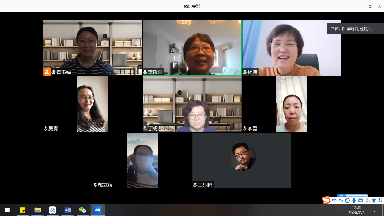 2020年7月3日上午10:00, 人文学院英语系党支部以“迎党的生日、讲战疫故事、悟初心使命”为主要内容,开展了线上主题党日暨专题组织生活会活动。会议通过腾讯会议软件举行,时长约100分钟。人文学院杜伟书记、英语系党支部全体七名成员参加了会议。首先是一起观看了北京高校纪念建党99周年专题片《永远的先锋》。然后进入此次主题活动的主体,分为四个环节:支部联系学院领导杜伟书记讲党课,支部成员讲体会,学习垃圾分类指引和支部书记讲微党课。