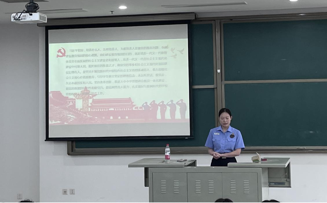 首先,中国人民公安大学2022级法硕二区队党支部的党员李无瑕作六月政治理论学习汇报。汇报中引用了习近平总书记的重要讲话:“培养什么人、怎样培养人、为谁培养人是教育的根本问题建设教育强国的核心课题”,并指出其作为研究生,应当进一步提高政治站位,自觉听党话、跟党走,主动把爱国情、强国志、报国行融入全面建设社会主义现代化国家、全面推进中华民族伟大复兴的历史进程中来。