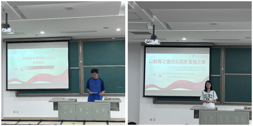接着,人文学院法学专业学生党支部的李艳彤、李天鹤进行了主题为“以教育之强夯实国家富强之基”的学习分享。该分享从中共中央政治局第五次集体会议中习近平总书记就建设教育强国讲话出发,讲解了加快建设教育体系,建设教育强国,是全面建成社会主义现代化强国的战略先导、是实现高水平科技自立自强的重要支撑、是促进全体人民共同富裕的有效途径。同时,就如何建设中国特色社会主义教育强国,结合社会现实分析了坚持党对教育事业的全面领导、坚持立德树人、坚持服务中华民族伟大复兴等六大坚持之内涵。