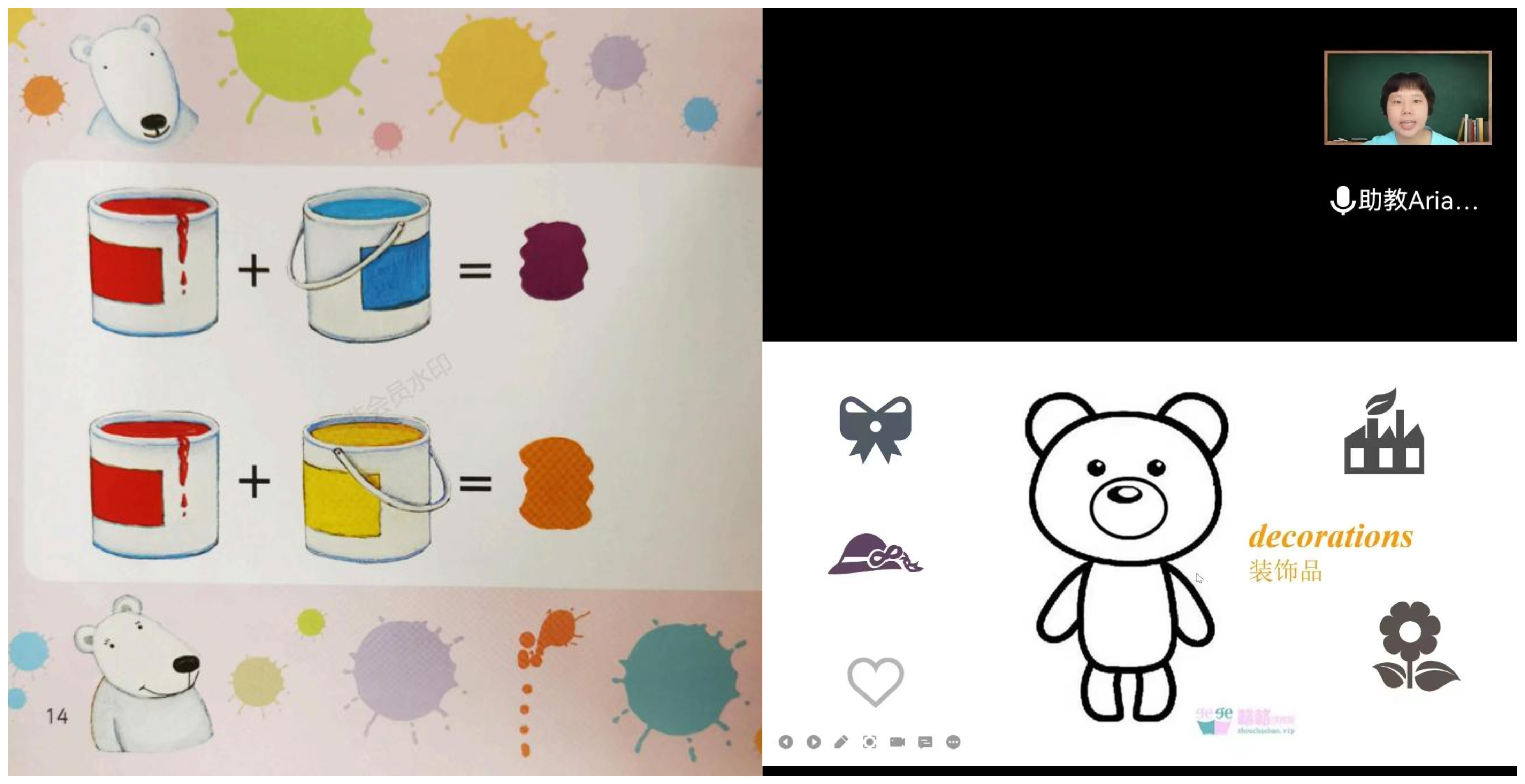 活动正式开始后,在主讲老师的带动下,小朋友们首先进行了自我介绍,在这个过程中,孩子们与志愿者们相互熟悉,课堂变得活跃起来。随后,19英语医学班的学生党员张心雨同学担任助教老师为孩子们播放视频混色实验动画,引导大家进入本次主题学习。接下来由21硕士班的杨颖同学担任主讲老师带领孩子们学习英文绘本,这次所学绘本的题目为“Color Bears”。整个过程中,主讲老师带领孩子们分节段地学习绘本内容,跟读学习英语单词,并讲述相关颜色的知识,丰富孩子视野,同时,主讲老师还不时与孩子们做游戏,丰富了活动形式,调动了现场氛围,也加深了孩子们的记忆。孩子们积极地举手抢答问题,气氛热烈。最后,在助教老师马露遥同学的带领下孩子们拿起画笔,投入到绘画的乐趣中,进行联系创作。