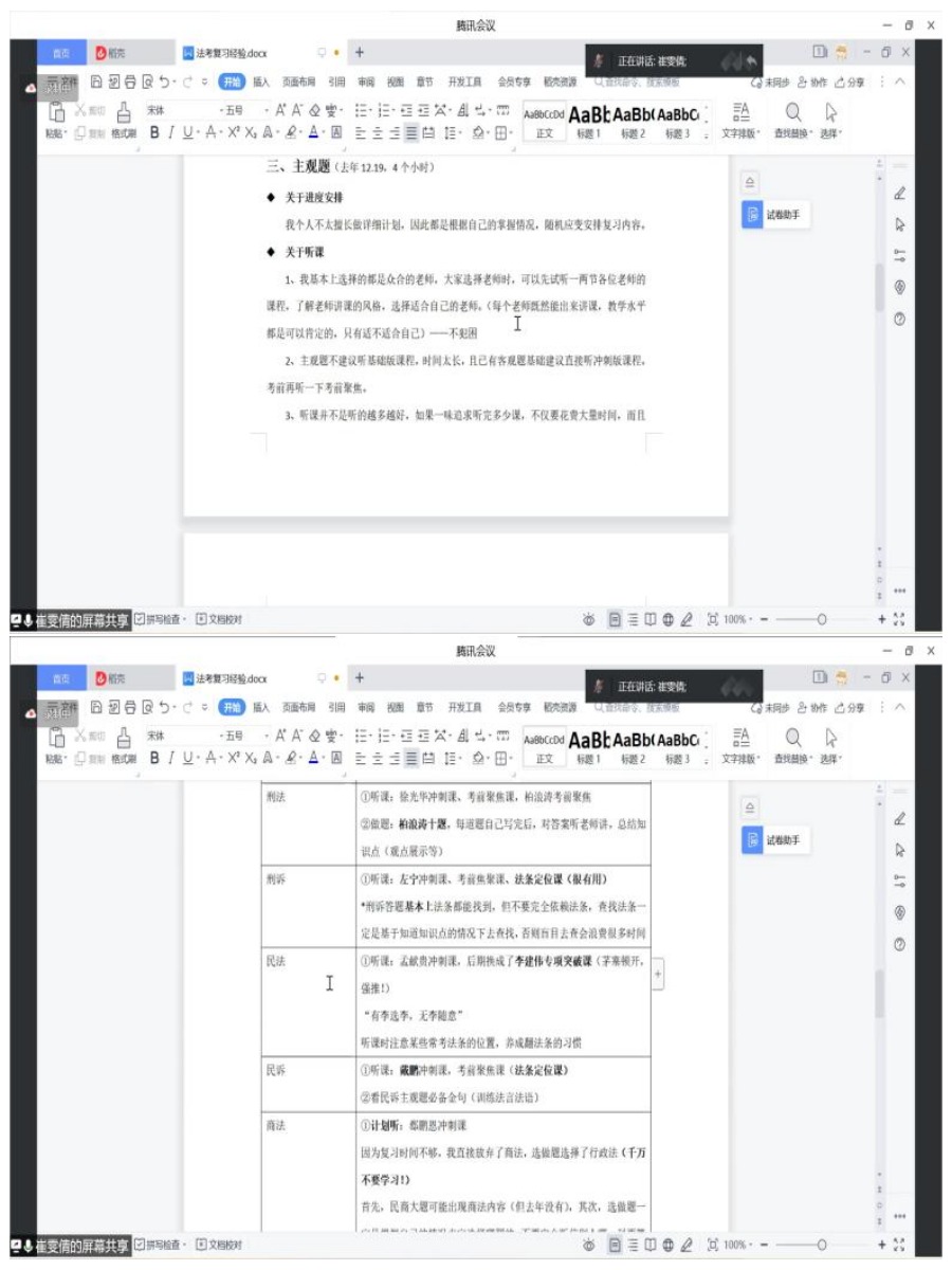 王茹学姐就目前考生备考选择法考培训机构和听网课的情况,为同学们推荐了优质网课资源,并强调了要注重提升听课效率,认识到把握时间的重要性,不要轻易放弃任何一门。另外,王茹学姐结合自身情况,就法考和考研的抉择,分享了自己的经验和建议,鼓励大家放平心态,合理安排时间。