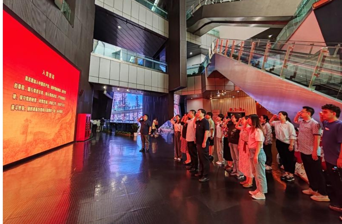 展厅参观结束后,人文学院党委书记张小勇带领党员师生,面对鲜红的党旗,郑重地重温了入党誓词。铿锵有力的誓言回荡在展厅,不仅是一次心灵的洗礼,更是对每位党员责任与使命的再次唤醒。这一庄严仪式,让每一位参与者深切感受到了作为一名共产党员的光荣与责任,坚定了为共产主义奋斗终身的决心。