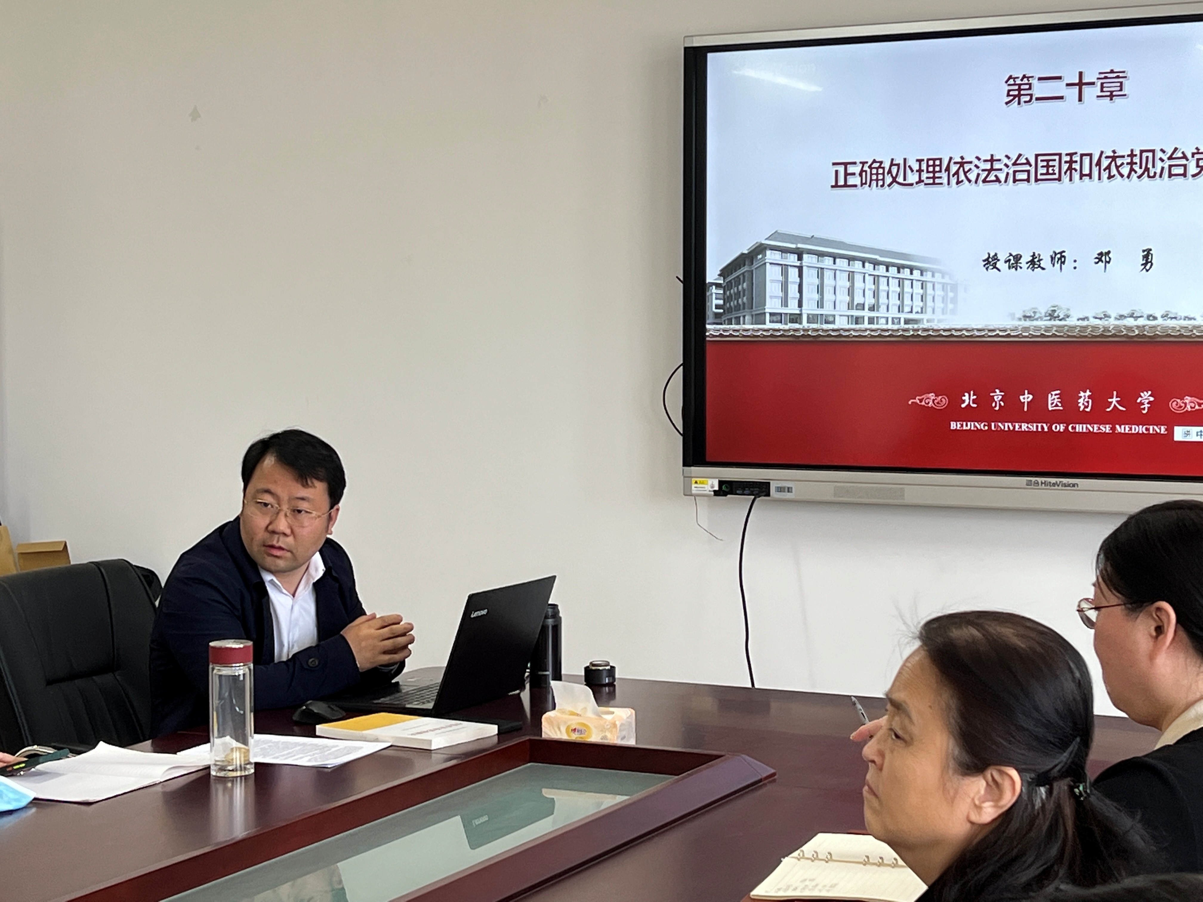 法律系邓勇教授围绕马克思主义理论研究和建设工程重点教材《习近平法治思想概论》中“正确处理依法治国和依规治党的关系”这一章进行了教学示范。他基于教学内容制作了思维导图,对国家法律和党内法规的区别与联系进行了细致分析,强调注重党内法规同国家法律的衔接与协调,形成国家法律和党内法规相辅相成、相互促进、相互保障的格局。在教学课件中,邓教授还加入了权威媒体的报道和专家学者的解读,起到了生动的引申和解释效果。