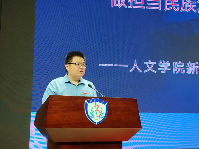 教师代表杨逢柱副教授的讲话启发新生以人文情怀锤炼创新品质和独立品格,以创新引领发展,以国际视野促进文化交流。期望同学们在人文学院这个实现梦想的舞台和摇篮里收获知识、友谊和成长,在不断挑战自我、超越自我中书写属于人文学院也属于自己的美好篇章。
