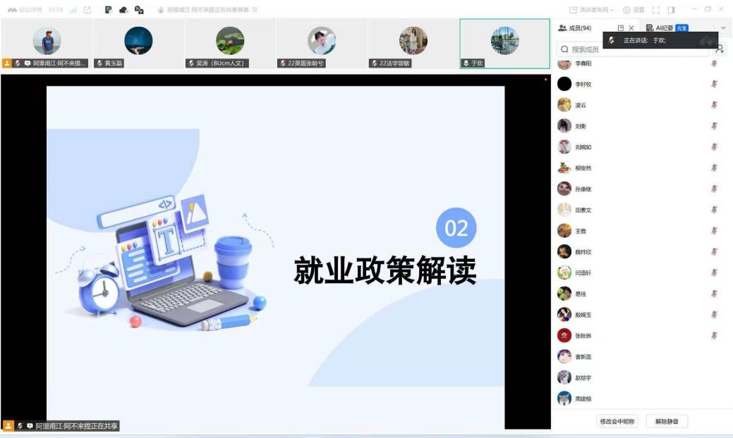 学院就业专员阿里甫江·阿不来提梳理了就业材料填写与提交的注意事项,并就下学期学院对于就业工作的安排做简要说明。