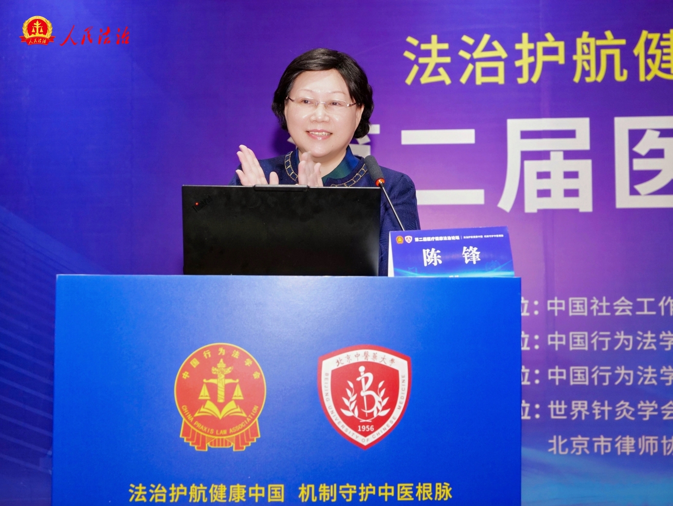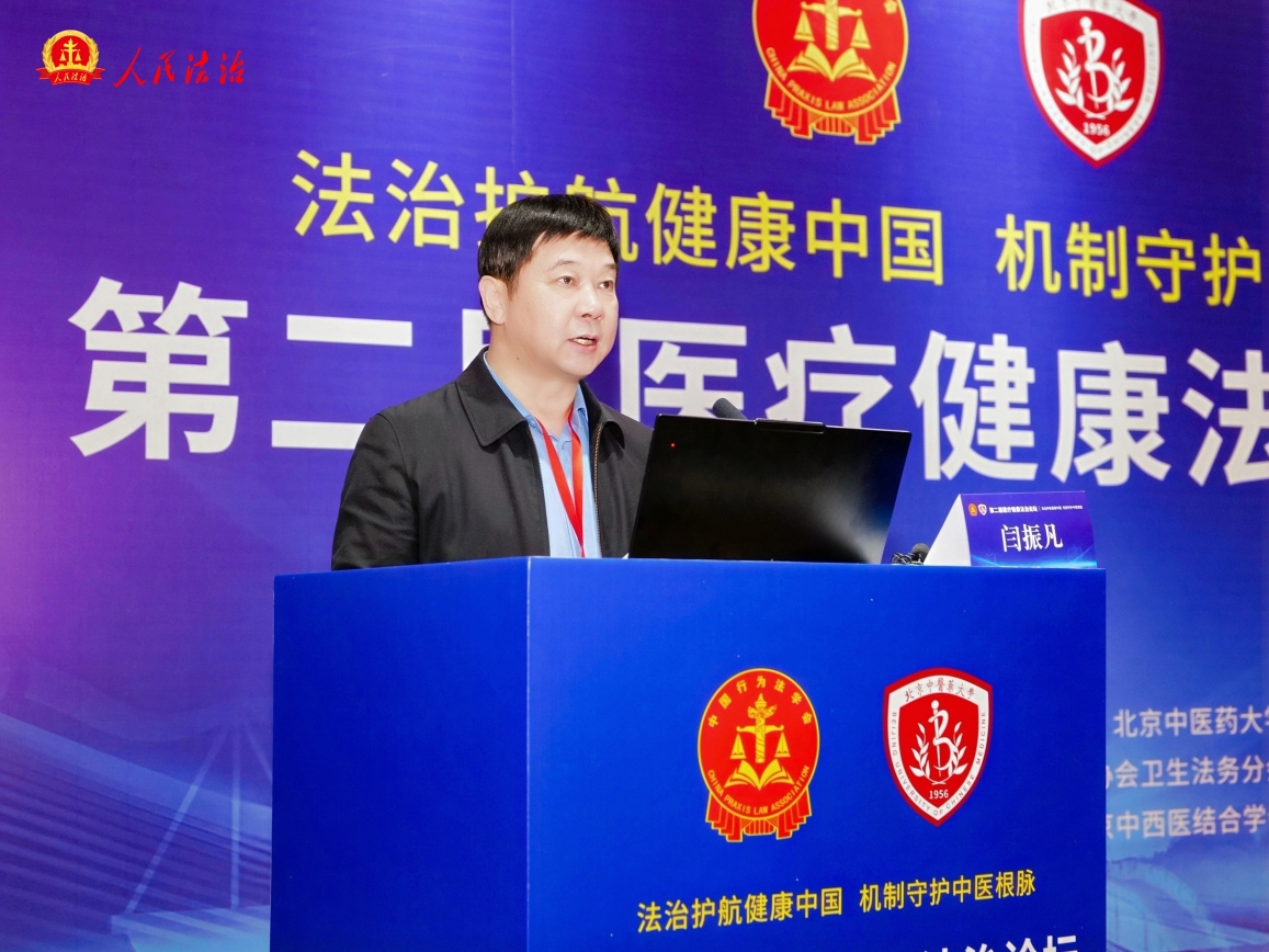 中国卫生健康思想政治工作促进会副会长兼秘书长刘世东发表“党建引领 思想聚力 促进卫生健康事业高质量发展”的讲话。中国中医科学院原党委书记、副院长查德忠发表“范式冲突视角下的中医药法治建设”主旨发言。世界针灸学会联合会主席、中国中医科学院首席研究员、国际欧亚科学院院士刘保延以“法治护航针灸技术现代化的思考”为题发表观点,探讨了法治护航针灸技术现代化的实践路径。新华社北京分社原社长、中国行为法学会医疗健康法治研究专业委员会主任委员、《人民法治》杂志社社长兼总编辑梁相斌发表“以文铸魂 以法正道——中医药文化传承传播的使命之思考”的主旨发言,强调中医药文化传承传播的法治使命。北京中西医结合学会会长、清华大学玉泉医院(清华大学中西医结合医院)副院长冯兴中,结合“中医与行为科学”发表观点。北京市第三中级人民法院审判委员会委员、民一庭庭长陈晓东围绕“当前医疗纠纷案件审理的若干疑难问题——浅议医疗损害鉴定生存期缩短损害赔偿及医疗纠纷的消保法适用”,为司法实践提供参考。中国医学科学院阜外医院主任医师欧阳晨曦,结合实践经验,思考讨论“如何给国家卫生健康事业发展营造一个‘健康’的医患氛围”。北京市律师协会党委委员、副会长万欣,结合自身法律实践经验,聚焦医疗纠纷案件审理中的疑难问题,探讨了“医药领域专业法律服务发展方向初探”等相关问题。陕西省合阳县中医医院党总支书记李晓东发表“校院携手聚合力 守正创新固根脉”的演讲。北京中医药大学人文学院党委委员、法律系主任杨逢柱,结合“中医保护的法律机制问题”进行深入分析,引发广泛共鸣。