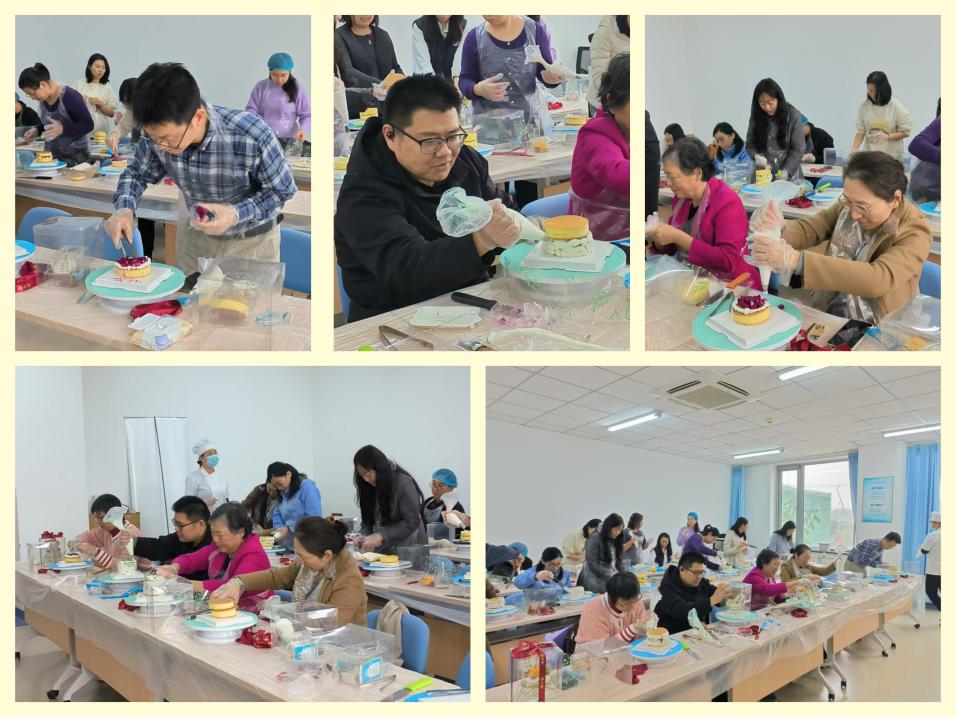 同时,为延续这份温暖与祝福,本次活动也将工会关怀融入其中,特别为2025年下半年过生日的老师共同庆生,让喜悦与荣耀交织,感恩与祝福同在。在授课老师的指导下,参与的老师们分工合作,从涂抹奶油到装饰成型,每一步都充满了欢声笑语。大家充分发挥想象力和动手能力,用五彩缤纷的水果点缀蛋糕,不仅展现了独特的艺术审美,也表达了对未来的美好期许。