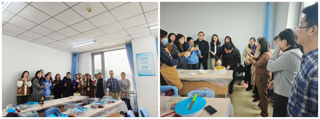 在这温馨的工会活动时光里,老师们一同动手,将快乐与祝福融入甜蜜的蛋糕之中,既为拥有光荣党龄的同志们喝彩,也为即将迎来生辰的同事们祝福。通过这一温馨而富有象征意义的集体形式,促进教师之间的深入交流,共同营造和谐温暖、积极向上的学院文化氛围。