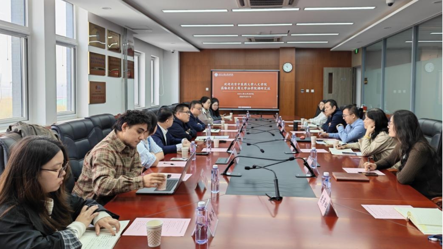人文学院张小勇书记对北工商法学院的热情接待表示感谢。他向对方介绍了北中医人文学院发展现状、面临的挑战以及未来双方可进一步探讨合作的设想。