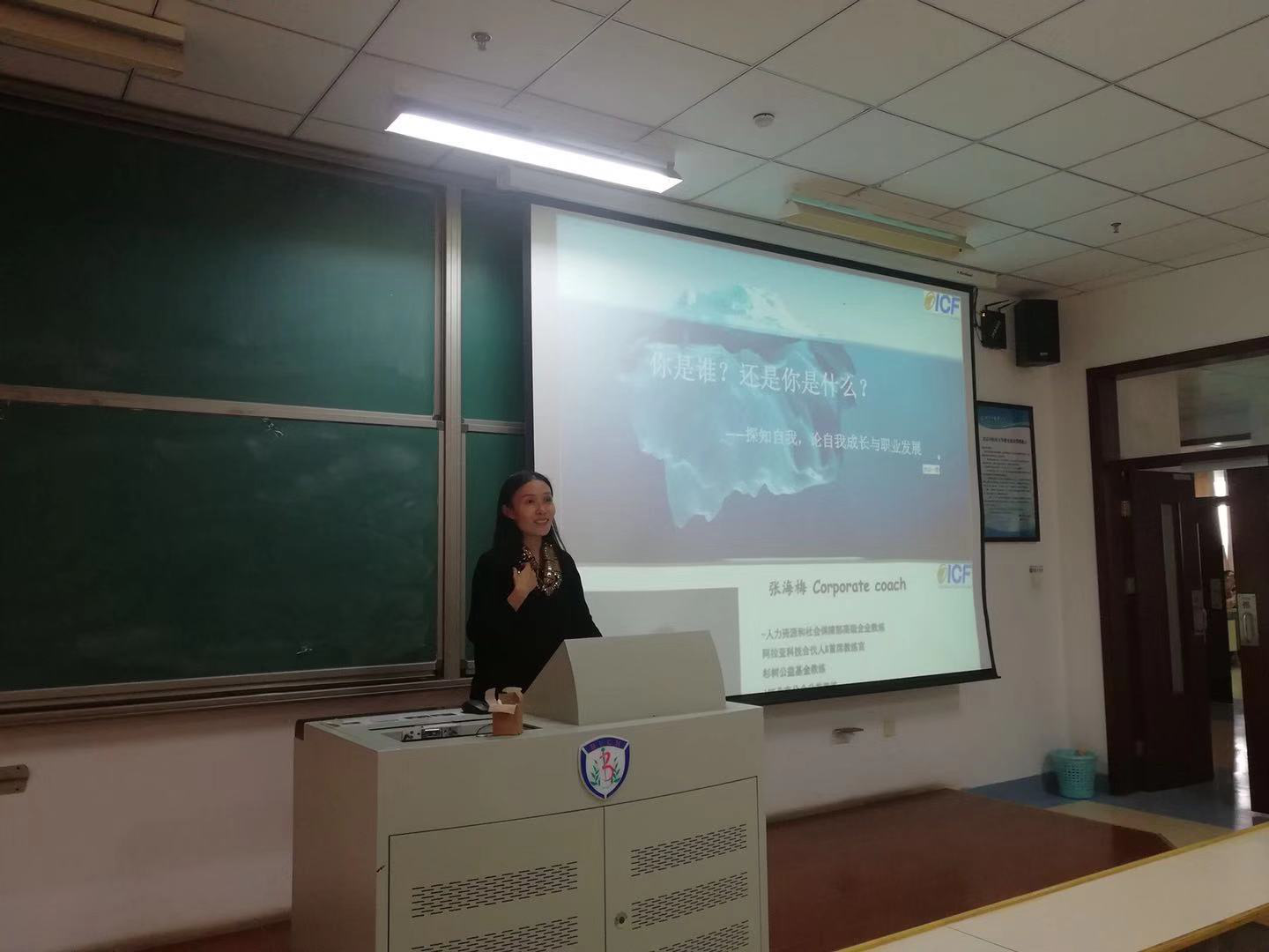 2019115日下午人文学院良乡校区东院教学楼270教室举办了“探知自我,论自我的成长与职业发展”主题讲座。本次讲座邀请了人力资源和社会保障部高级企业教练张海梅老师,讲座由人文学院学生办公室刘玉老师主持