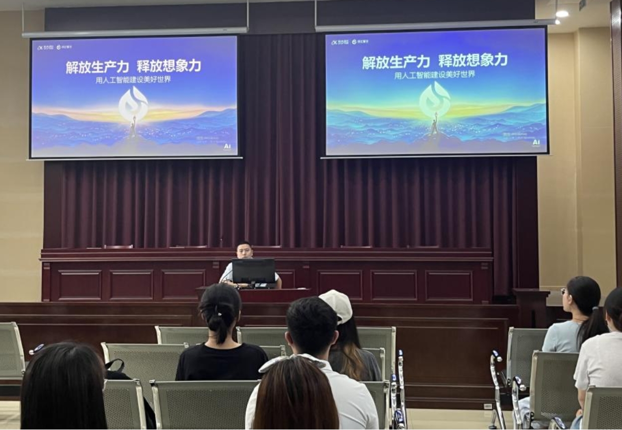 2024年6月20日下午两点,人文学院在模拟法庭成功举办了科大讯飞集团专场宣讲会。此次宣讲会由谭静副书记主持,科大讯飞的技术人员主讲,主题为“解放生产力,释放想象力,用人工智能建设美好世界”。